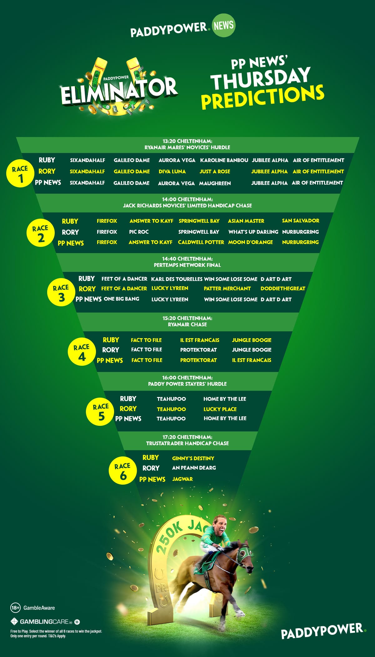 Paddy Power offers comprehensive markets for all major UK and Irish racing festivals. This includes: