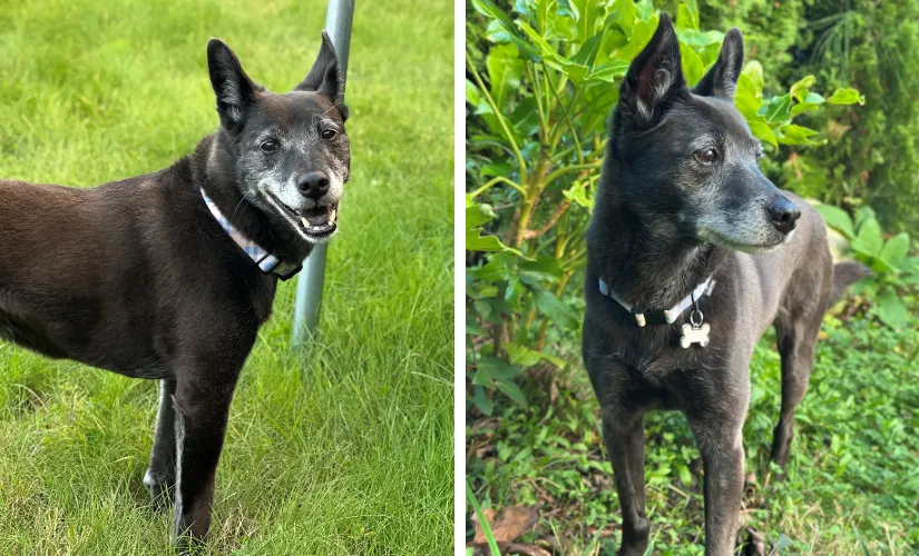 Sarah’s adoption journey with Siren began unexpectedly. After losing her 16-year-old cat, Yuki, in July, Sarah and her boyfriend Trevor visited the animal center to donate a scratching post. There, Siren, a senior dog in the reception area, made an immediate impression by jumping up and licking Trevor.